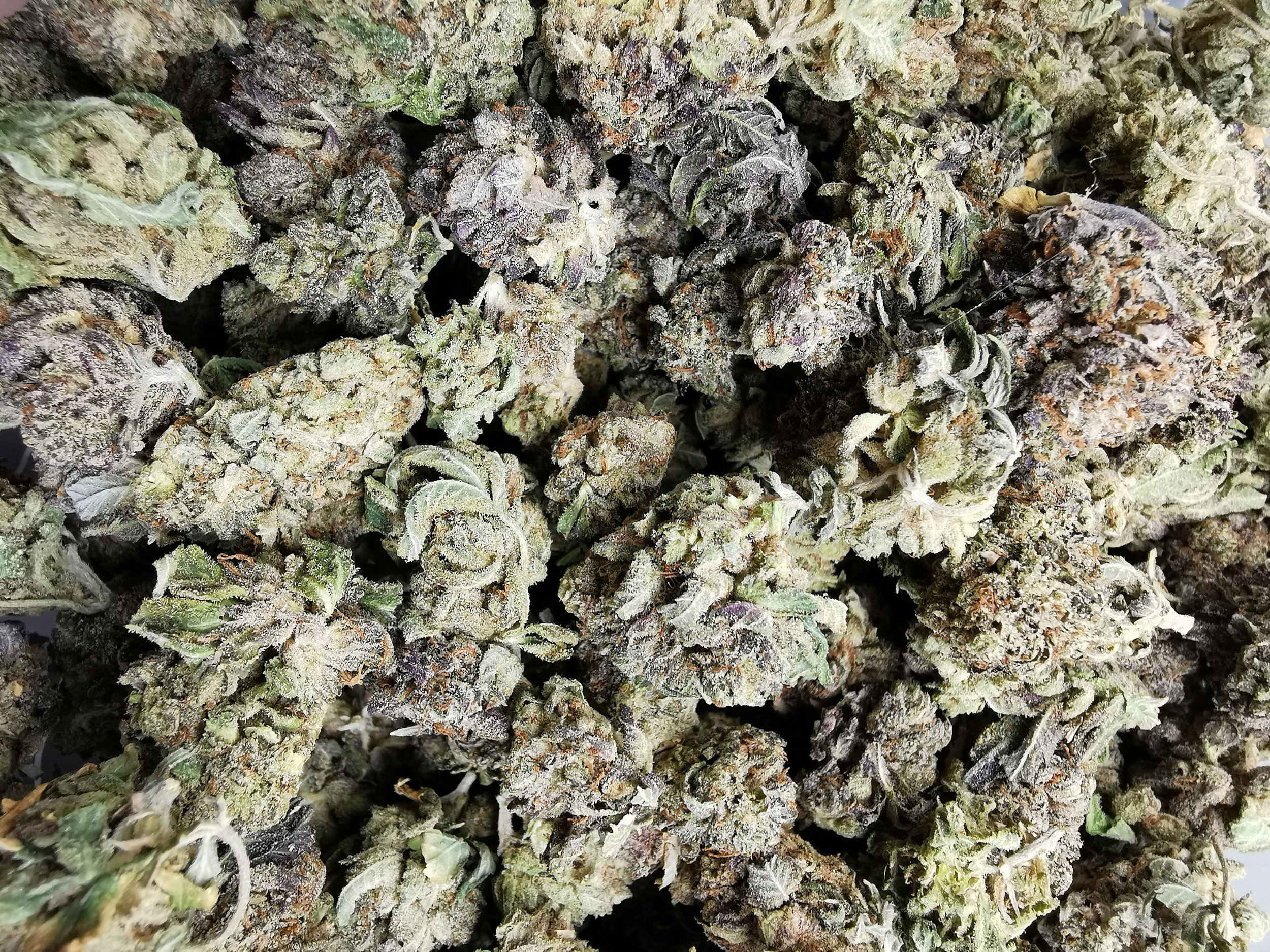 Also known as Lavender Kush, this strain gets its name from its odor and the dark purple coloration on its leaves. It’s an indica-dominant mix of Super Skunk, Big Skunk Korean, and Afghani Hawaiian, and it has a 40:60 sativa/indica ratio. Lavender has a spicy aroma with floral tones and has a sweet lavender taste. This strain is well known for its unique flavor and smell. It produces a strong, relaxing high with euphoria and happiness. It’s frequently used to treat GI problems and mental disorders, as its soothing effects wash anxiety away and lift depression. Dry mouth and red eyes are possible, as is paranoia and headaches, though those are very limited. Lavender hits THC levels as high as 27%, making it one of the more potent and effective strains on the market. It causes a slight head high and then a powerful body high driven by the indica-dominant genes. Lavender is most popular on the West Coast, less so in the rest of the country. Its short vegetative cycle and easy cultivating makes it a good choice for patients who home grow. This