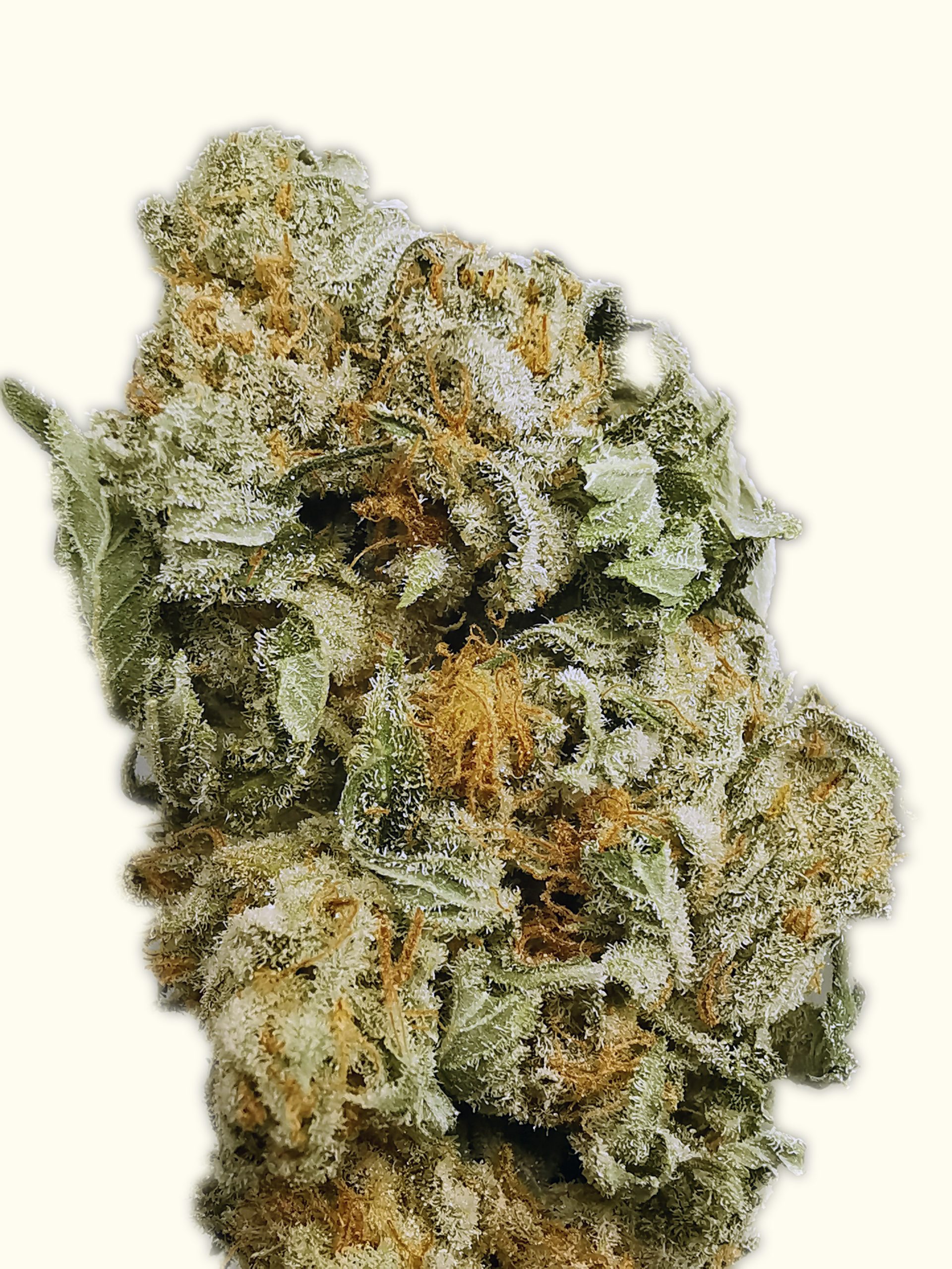 This strain is more typical of an indica than sativa. Its leaves are light green, made to appear lighter by a heavy coating of trichomes. All this resin makes buds sticky, and difficult to break apart without a grinder. When buds are broken, however, they give off a sweet and smooth lemon scent. Intact buds also have Kush-like notes of dank earth and musk, balancing out the citrus profile.