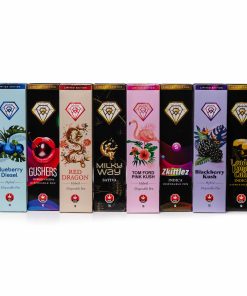 | Strain | Blueberry Diesel (Hybrid), London Pound Cake (Indica), Gushers (Sativa Hybrid), Zkittlez (Indica), Red Dragon (Hybrid), Milky Way (Sativa), Blackberry Kush (Hybrid), Tom Ford Pink (Hybrid), Ace Limited Versacy (Indica), Ace Limited Champagne Kush (Indica), Charlottes Web (Hybrid), Wedding Cake (Hybrid), Love Potion (Sativa), ACDC (Sativa), Wild Berry (Indica) |