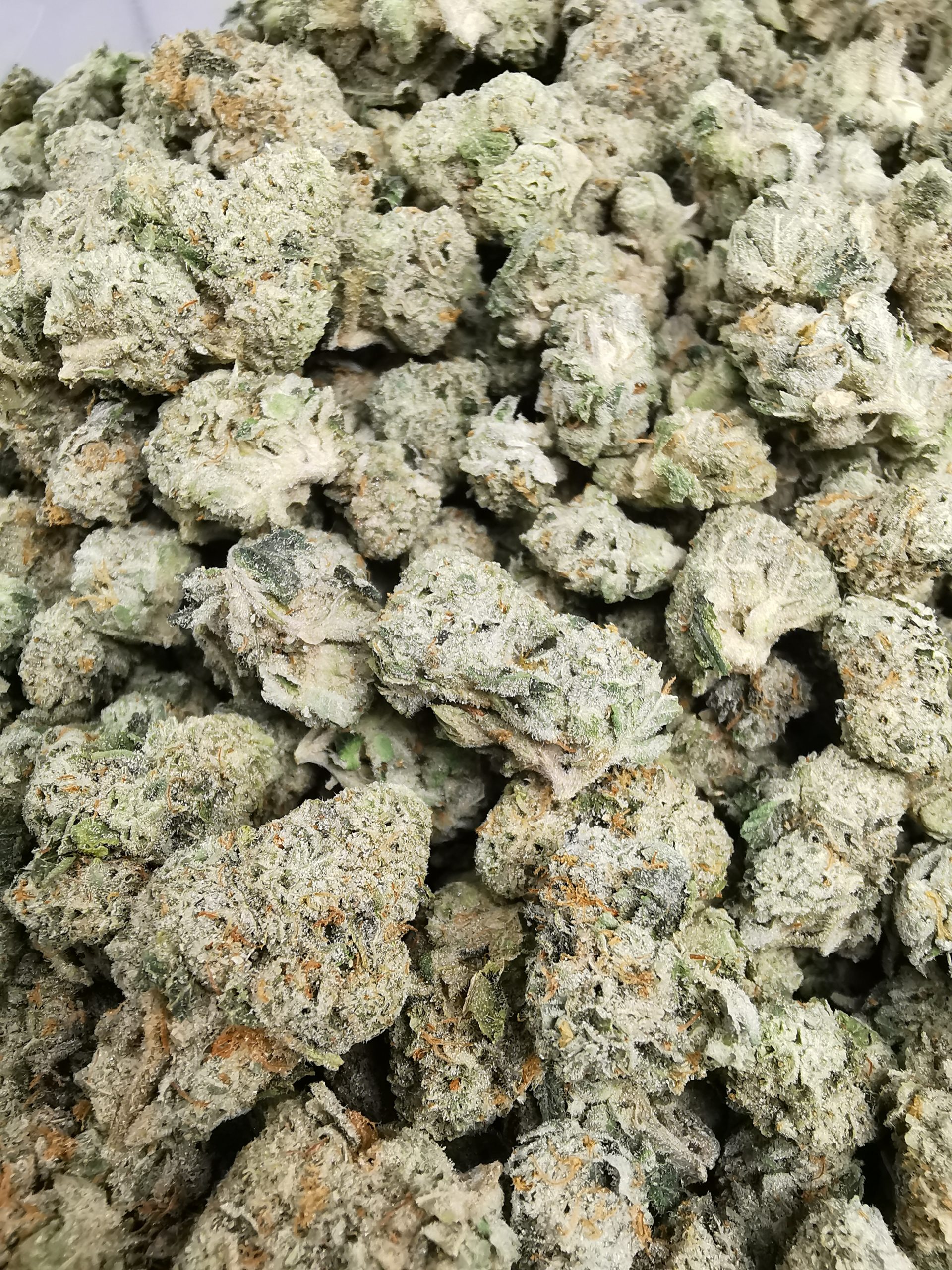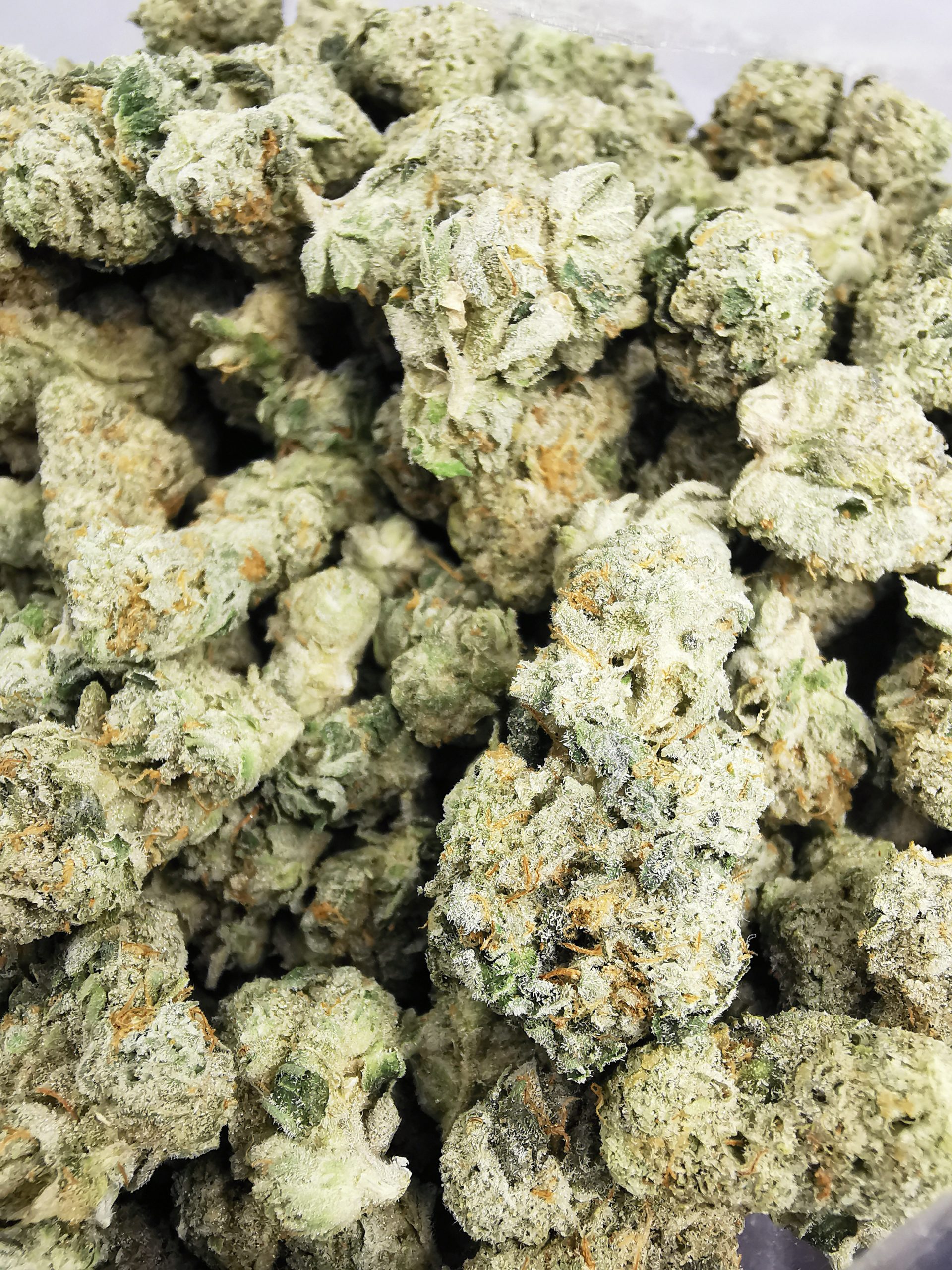MAC, also known as “Miracle Alien Cookies,” is an evenly balanced hybrid strain (50% indica/50% sativa) created through crossing the infamous Alien Cookies X (Colombian X Starfighter) strains. Perfect for any hybrid lover who appreciates a super heavy flavor and high, MAC brings on the hard-hitting effects that will have you feeling totally happy with the world around you in no time at all. It starts with a rush of heady effects that fill your mind with a sense of happy creativity and pure euphoria. This is accompanied by a deep-felt relaxation that permeates your very being, leaving you totally calm in both mind and body without a care or pain in the world. Thanks to these effects and its high 14-20% average THC level, MAC is said to be perfect for treating those suffering from conditions such as insomnia, appetite loss or nausea, chronic stress, depression, chronic pain and mood swings. This bud has a dank sour citrus flavor with a spicy earthy overtone that sweetens upon exhale. The aroma is of earthy herbs and pungent diesel, all wrapped up in a sour dank overtone that fills any room with its heavy stench. MAC buds have super sticky long grape-shaped minty green nugs with sparse orange hairs and a coating of tiny white crystal trichomes.