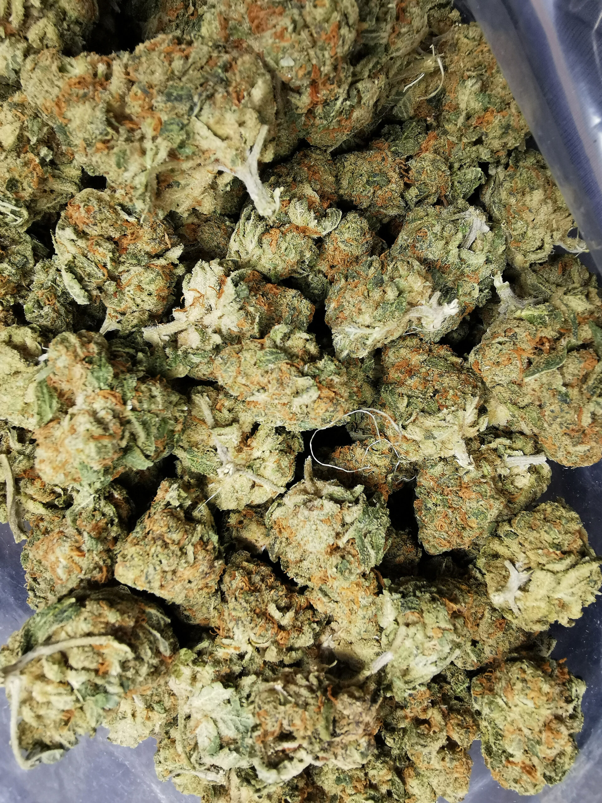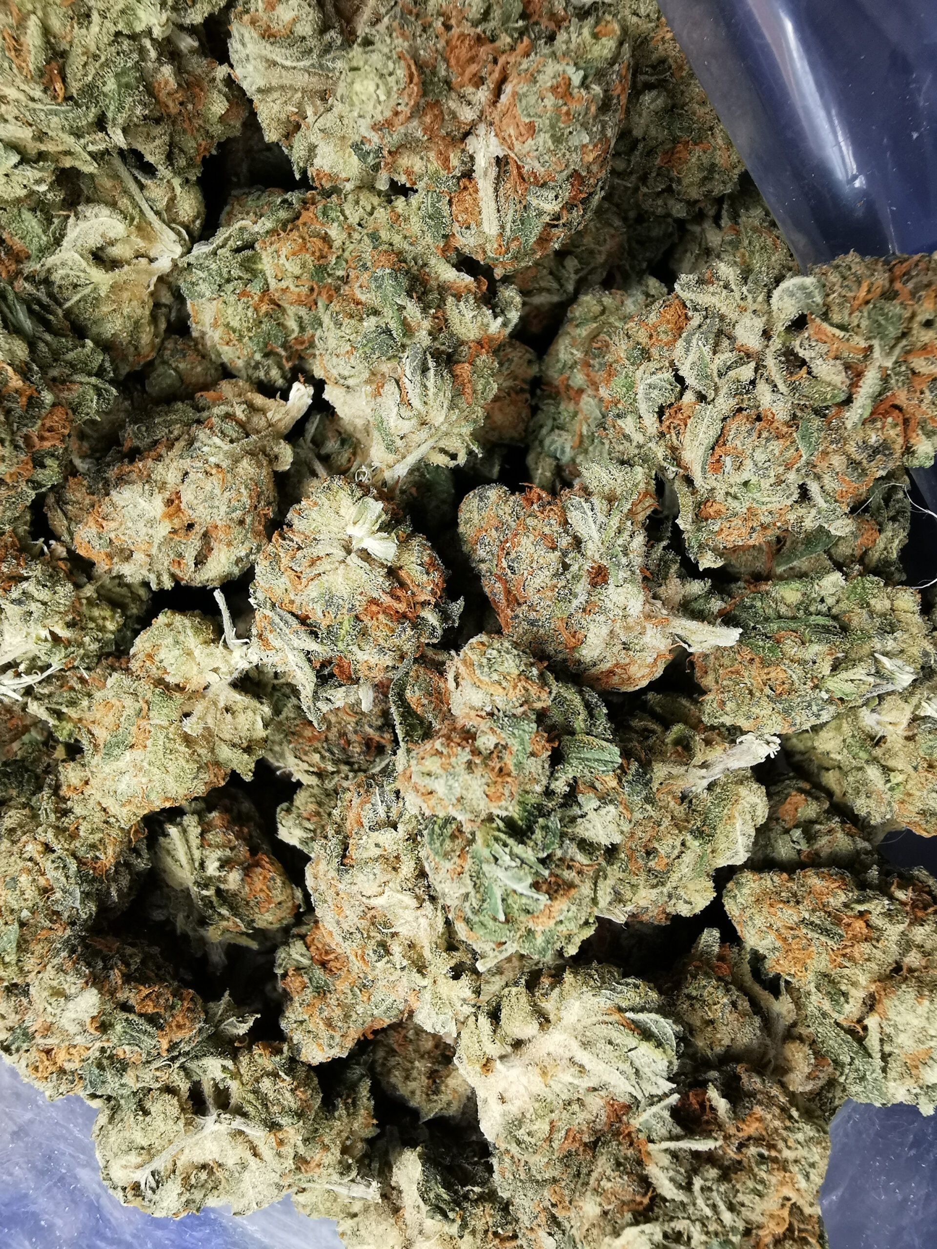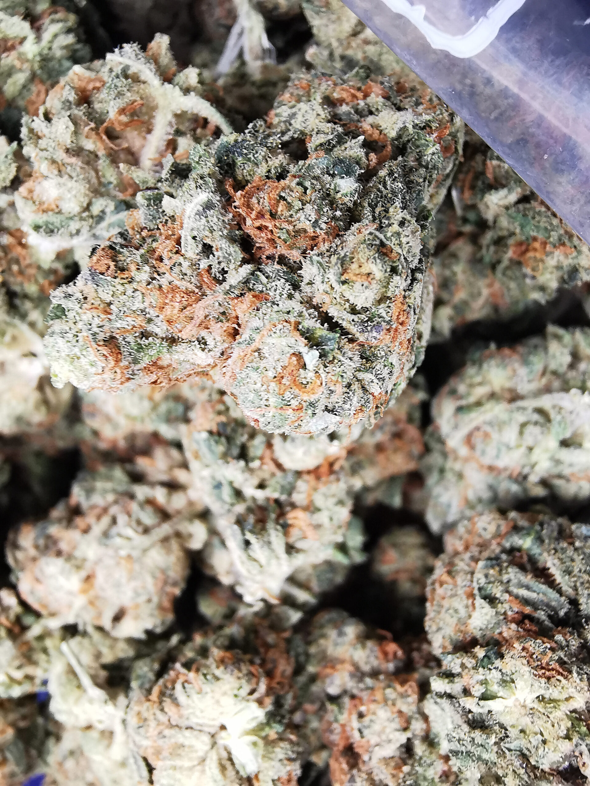 Monkey Bread, also known as “Monkey Bread #1,” is a rare indica dominant hybrid strain (70% indica/30% sativa) created through crossing the classic Grease Monkey X Forum Cut Girl Scout Cookies strains. If a perfectly delicious flavor and a potent indica heavy high is what you’re after, you’ve found the perfect bud in Monkey Bread. This lovely lady packs a super sweet and spicy sugary chocolate flavor with a lightly sweet vanilla exhale. The aroma follows the same insanely delicious profile, with a lightly earthy effect that turns pungent as the nugs are broken apart and burned. The Monkey Bread high is just as delectable as the flavor, with super relaxing effects that are perfect for a night out with friends when you just want to kick back with a few drinks and chat. You’ll feel lifted and euphoric with a sense of sociability that has you feeling outgoing and chatty with anyone and everyone around you. Thanks to these effects and its high 20-32% average THC level, Monkey Bread is often chosen to treat those suffering from conditions such as chronic stress, insomnia, appetite loss or nausea, muscle spasms or cramps, and chronic pain. This bud has tapered grape-shaped olive green nugs with thin light amber hairs and a coating of frosty tiny amber crystal trichomes.
