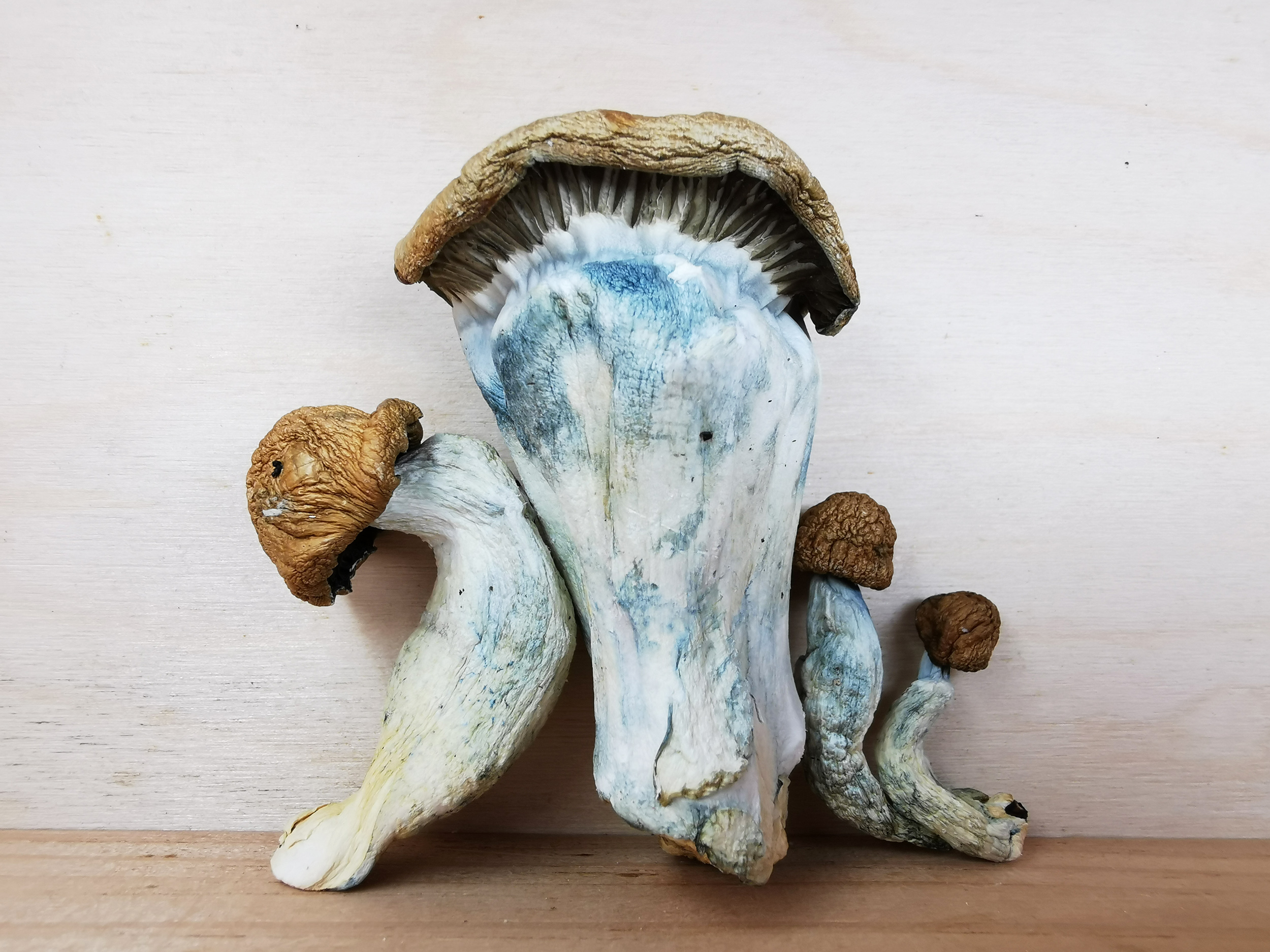 Makilla Gorilla is a new Cubensis variety. It is a hybrid of Melmac and APE. Makilla Gorilla mushroom genetics give the mushrooms larger more aggressive fruits that contain a cap that is convex at the top. The caps are a yellow to gold color that have hints of brown throughout. As these mushrooms mature the caps round top open up and flatten out.