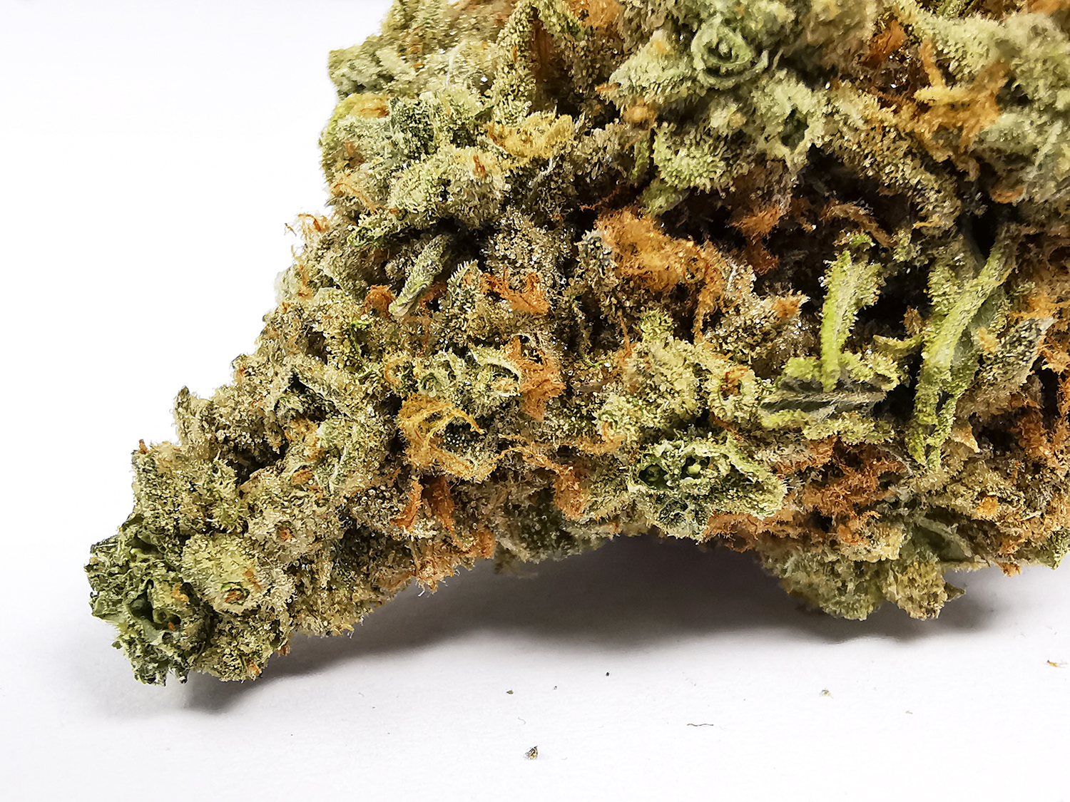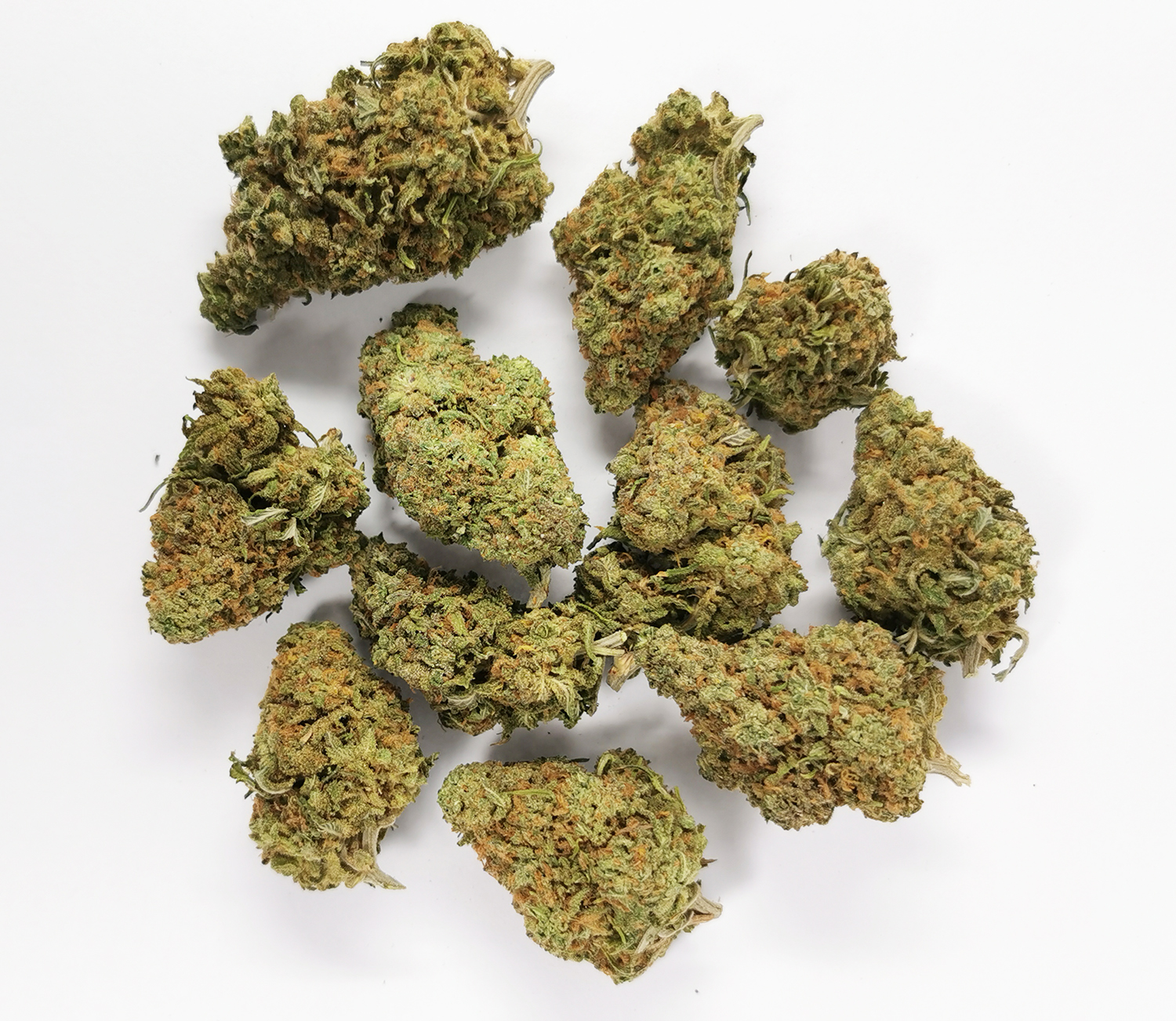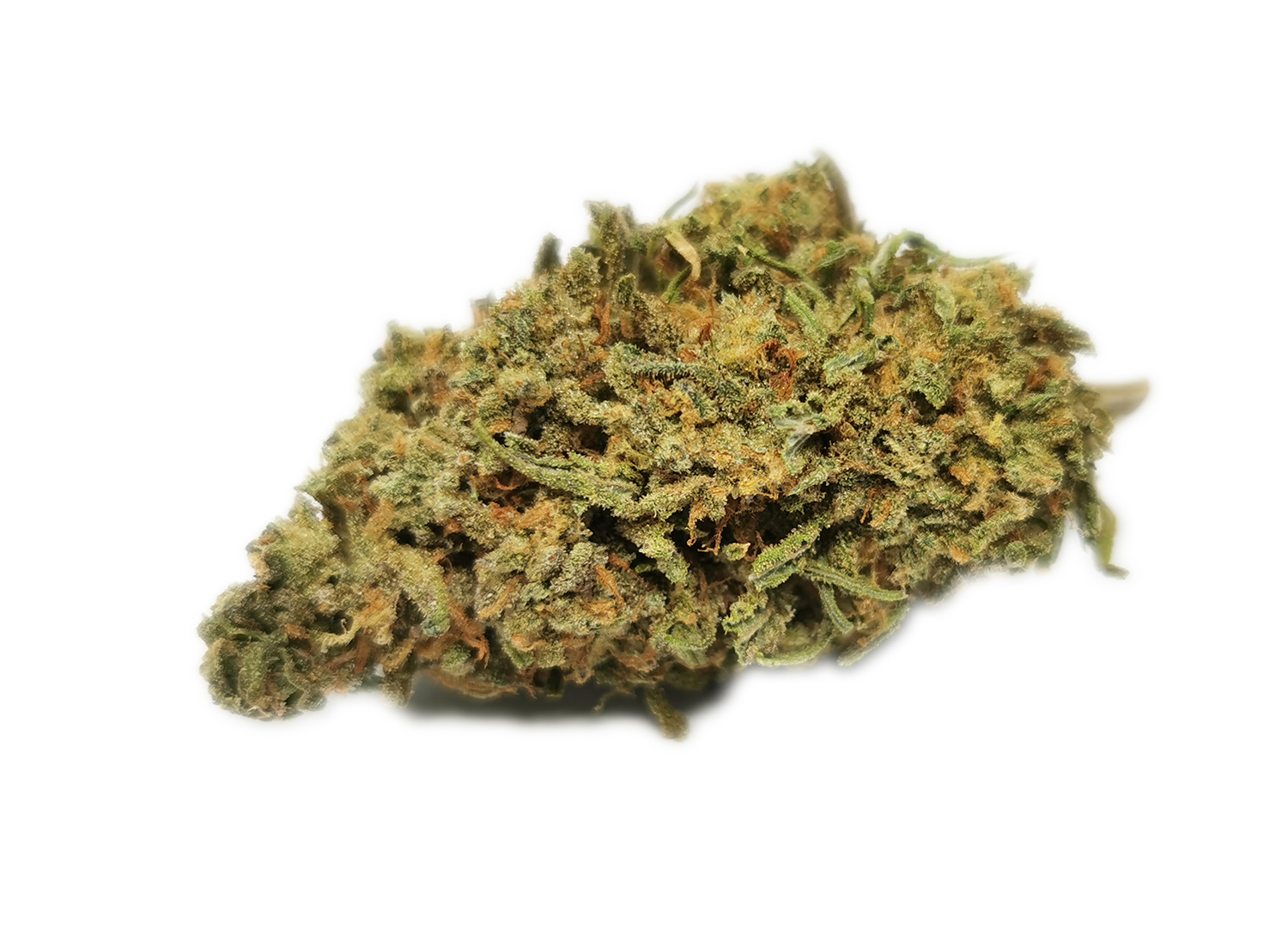 Nuken is an indica dominant hybrid (80% indica/20% sativa) strain created as cross between the cult favorite God Bud X Kish strains. This potent bud boasts a moderate THC level between 13-25% and has a deliciously enticing aroma and flavor. The aroma of Nuken is that of a sweet marshmallow with a hint of sharp skunk, and the taste is much like a freshly baked marshmallow pie with a hint of skunk upon exhale. Nuken buds have large dense and furry light minty green nugs with a thick layer of dark olive green leaves and sparse fiery orange hairs. Each nug has a fine layer of translucent crystal trichomes and is dripping with sweet sticky visible resin. The Nuken high is characterized by a long-lasting and relaxing buzz that doesn’t leave you sedated and isn’t narcotic in nature. You’ll be hit with a body buzz that starts in your spine and slowly spreads throughout your body, ridding you of any pain. This is accompanied by a deep introspection that can leave you distant and spacey at times. Because of these potent effects, Nuken is said to be perfect for treating conditions such as chronic pain, mild cases of depression, and chronic stress or anxiety.