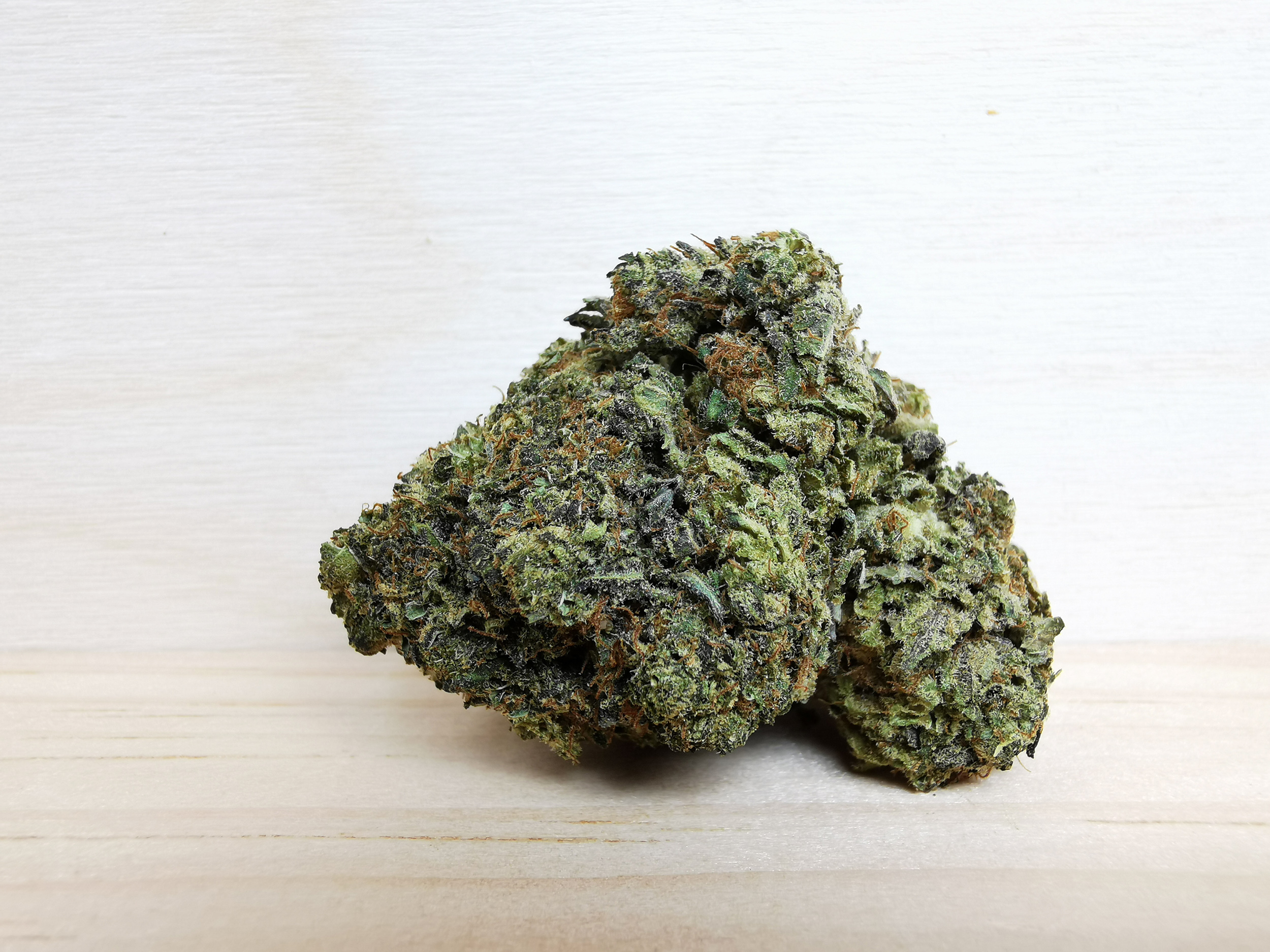 Nuken is an indica dominant hybrid (80% indica/20% sativa) strain created as cross between the cult favorite God Bud X Kish strains. This potent bud boasts a moderate THC level between 13-25% and has a deliciously enticing aroma and flavor. The aroma of Nuken is that of a sweet marshmallow with a hint of sharp skunk, and the taste is much like a freshly baked marshmallow pie with a hint of skunk upon exhale. Nuken buds have large dense and furry light minty green nugs with a thick layer of dark olive green leaves and sparse fiery orange hairs. Each nug has a fine layer of translucent crystal trichomes and is dripping with sweet sticky visible resin. The Nuken high is characterized by a long-lasting and relaxing buzz that doesn’t leave you sedated and isn’t narcotic in nature. You’ll be hit with a body buzz that starts in your spine and slowly spreads throughout your body, ridding you of any pain. This is accompanied by a deep introspection that can leave you distant and spacey at times. Because of these potent effects, Nuken is said to be perfect for treating conditions such as chronic pain, mild cases of depression, and chronic stress or anxiety.