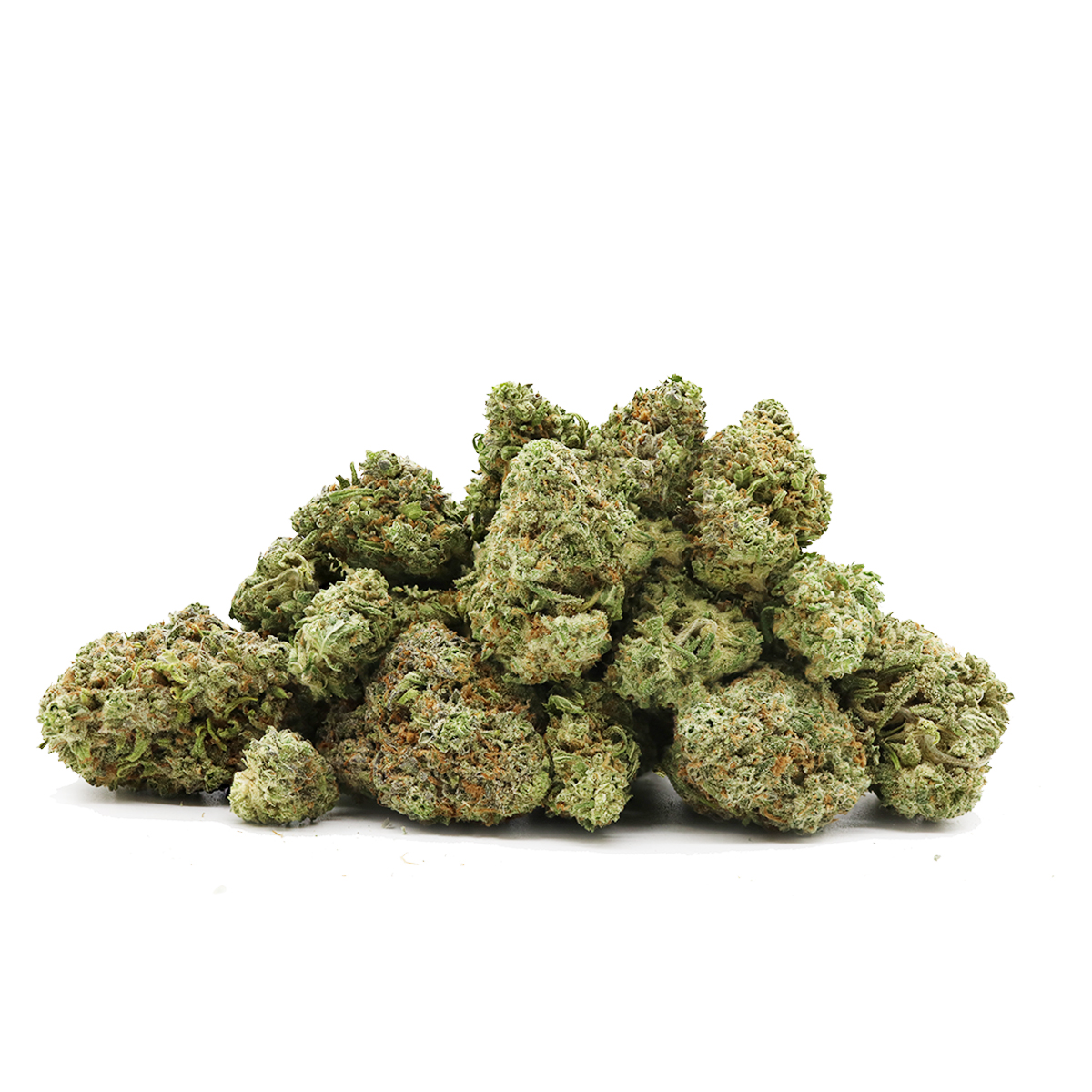 The mostly indica Nuken is a Canadian strain bred by combining genetics from Kish (a cross of two Shishkaberry parents) and God Bud. Her even-keeled effects are delivered alongside a sweet, earthy aroma of fresh herbs and grass. While undeniably strong, Nuken typically leaves you functional enough to still enjoy hobbies and the company of friends. Nuken blooms with rounded, dense buds covered in a blanket of crystal resin veiling its sage hues.