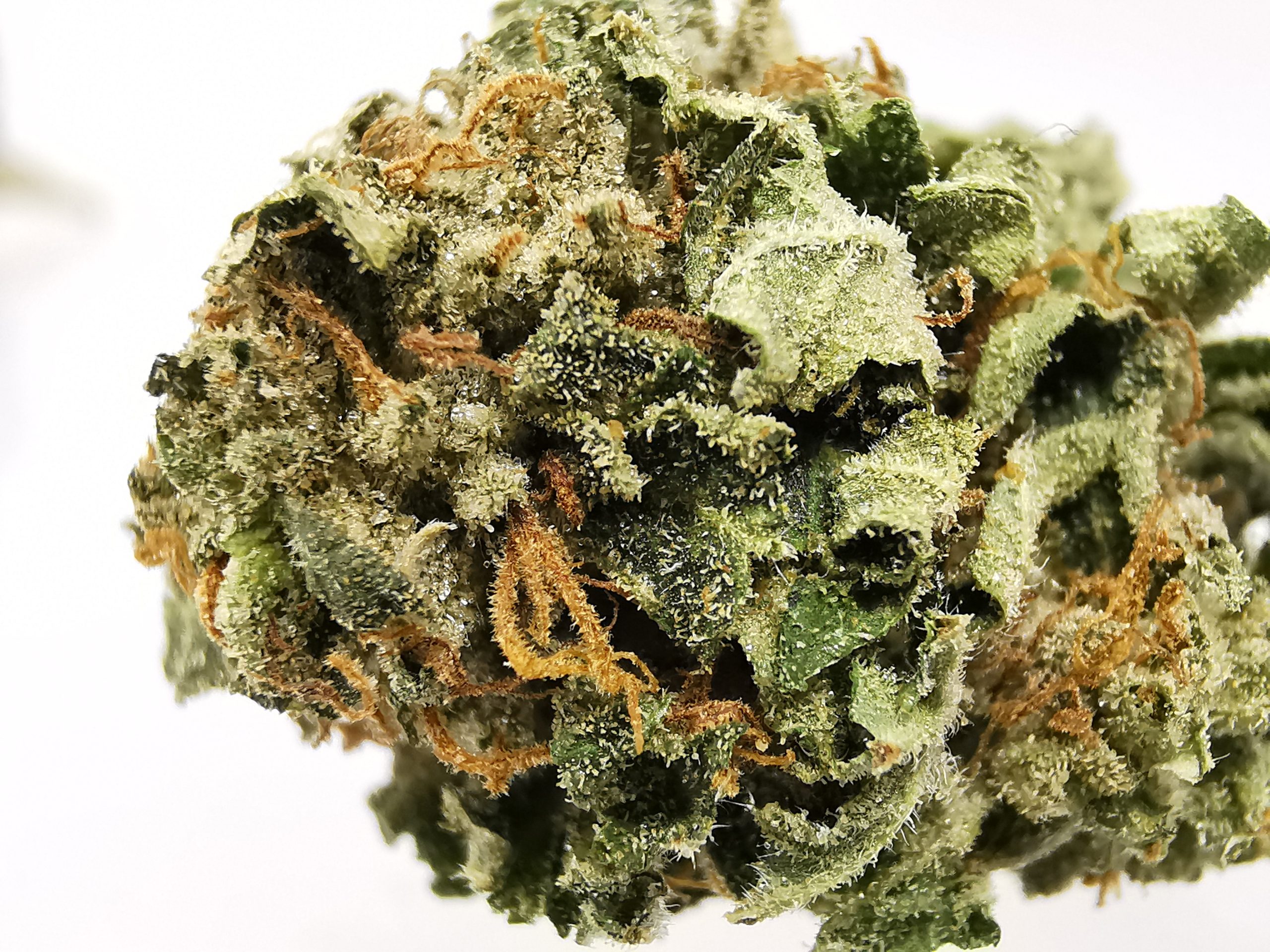Tahoe Alien is a slightly indica dominant hybrid (60% indica/40% sativa) strain created through a cross of the insanely popular Tahoe OG Kush X Alien Kush strains. This powerful bud is best known for its insanely high THC level of up to 24% and its CBD level that typically falls above the 4% mark. The Tahoe Alien high is super heavy and relaxing without becoming overly sedative or narcotic. It starts with a cerebral head rush that leaves you insanely euphoric and happy with giggly social tendencies. You’ll feel a significant relief from any mental pain or racing thoughts without any feeling of paranoia or anxiety. These heady effects are accompanied by a mellow relaxing body buzz that rids you of any physical body pain without leaving you couch-locked or sedative. Because of these mellow effects, Tahoe Alien is a favorite for treating chronic stress, inflammation, chronic pain, insomnia, nausea, and muscle spasms or tremors. This bud has a delicious subtle aroma of earthy kushy pine with a hint of lemon and a taste of sweet earthy kush with a pungent lemon pine aftertaste upon exhale. Tahoe Alien buds have large oversized lumpy and dense light minty green popcorn-shaped nugs with amber undertones, fiery orange hairs, and a frosty layer of chunky golden crystal trichomes.