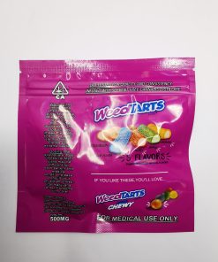 An infused flavored gummy covered in candy-coated Nerd crunches. These medical Weed Tart Rope Bites are infused with 500 mg of active THC, making this one mighty awesome candy edible that only takes 60 minutes to fully kick in! The rope is easily breakable, allowing users to tear and share the euphoria among your peers. Slip into cannabis wonderland with an edible cannabis-infused candies delivery.